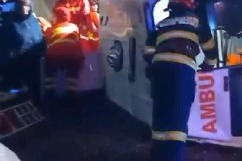 Acesta a rămas încarcerat. Doi pacienți care se aflau în ambulanță au rămas și ei captivi.