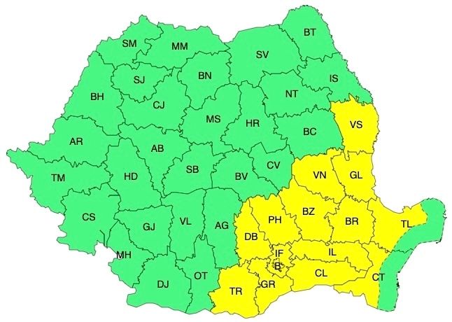 În cea mai mare parte a Munteniei, Dobrogea continentală și sudul Moldovei se vor înregistra temperaturi deosebit de ridicate pentru această dată, va fi caniculă și disconfort termic ridicat, iar indicele temperatură-umezeală (ITU) va depăși ușor pragul critic de 80 de unități. Temperaturile maxime vor fi în general de 35...37 de grade. Local, minimele nu vor coborî sub 20 de grade, caracterizând o noapte tropicală.
