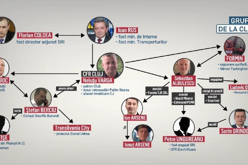 "Ioan Rus, fost ministru de Interne, dar și al Transporturilor. Se află în spatele lui Neluțu Varga, care are multe afaceri imobiliare în Cluj. Varga apare și în dosarul retrocedărilor Paltin Sturdza, în care apare și Ștefan Berciu, implicat și el în proiectul Transilvania City. Berciu este și consul onorific al statului Burundi, calitate în care circulă cu o mașină diplomatică a acelui stat. Cei doi, Varga și Berciu, au fost acuzați inițial pentru deturnare de fonduri și fals, într-un dosar de 300 de milioane de euro, dar au fost achitați.