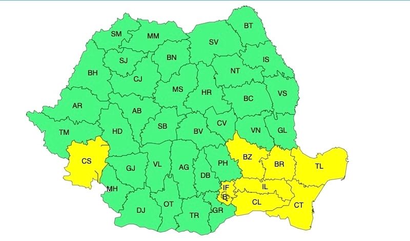 Zone afectate: Dobrogea, jumătatea estică a Munteniei și sudul Banatului