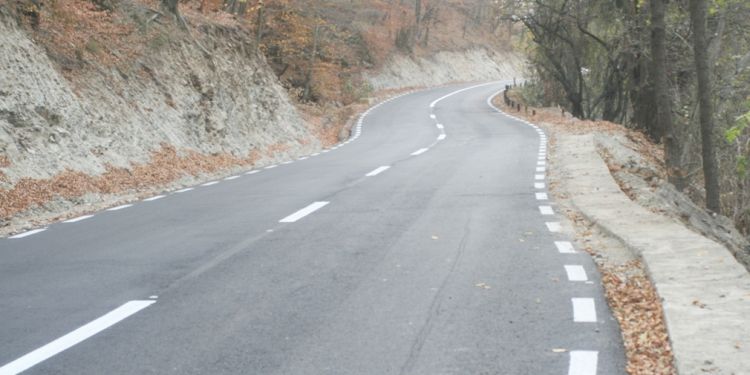 Așa arăta drumul județean la inaugurare.[/caption]Atât de complexe au fost lucrările că, la niciun an distanță, drumul s-a rupt. Asfaltul a cedat, odată cu peretele de sprijin, la mijlocul tronsonului. Circulația are loc în acest moment alternativ pe o singură bandă.