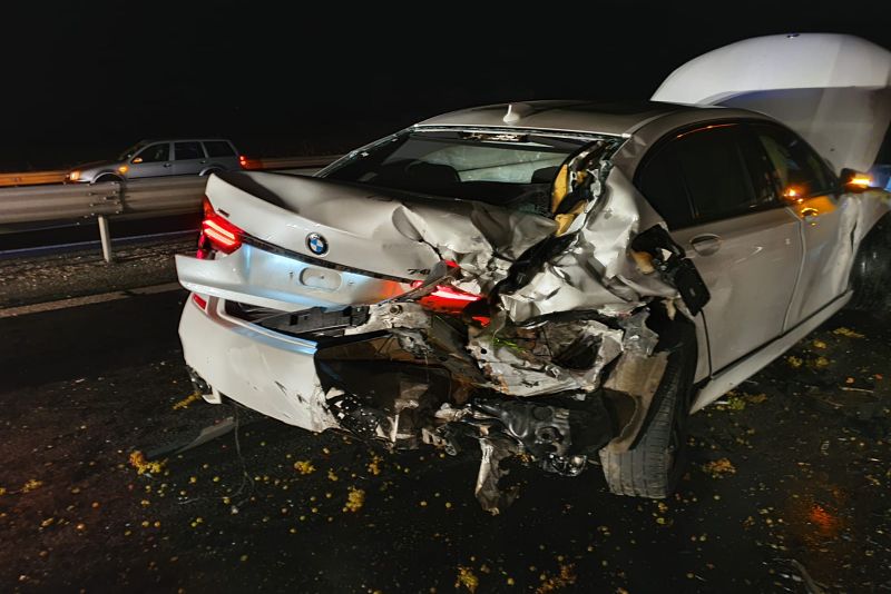 Conducătorul unui alte autoutilitare a izbit cu forță autovehiculul care oprise brusc și ambele mașini au fost proiectate în față, în autoutilitara de pe banda de urgență.