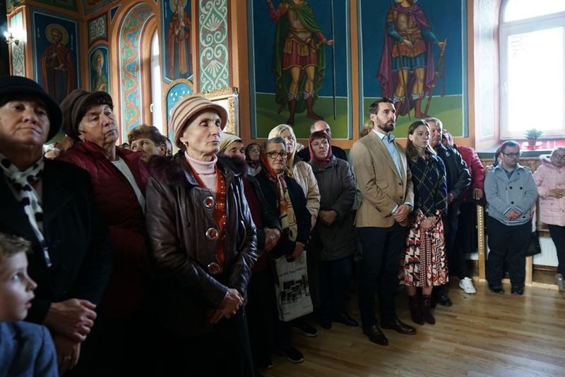 Fostul principe Nicolae și soția sa Alina-Maria Binder au participat, duminică, în ziua alegerilor, la slujba de resfințire a bisericii parohiei Zigoneni, din comuna Băiculești.