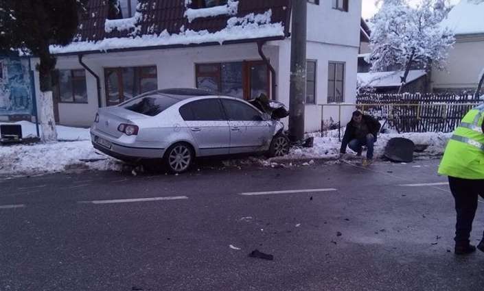 Maşină proiectată în stâlp, la Curtea de Argeş! Tânăr rănit