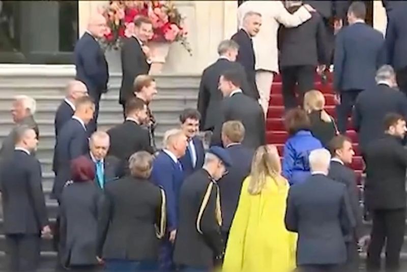Pentru a da impresia că are o relație bună cu Donald Trump și după ce a prins un loc în spatele acestuia la fotografiile de grup, Nicușor Dan pare că forțează o discuție spre finalul momentului. Președintele României are mai apoi un schimb de replici cu Willem-Alexander, Regele din Țările de Jos, iar după ce Donald Trump se întoarce spre aceștia, Nicușor rămâne impresionat și continuă discuția. În tot acest timp, liderul de la Casa Albă i-a făcut semn monarhului olandez să înainteze și l-a privit doar pe acesta, fără să schimbe vreo vorbă cu Nicușor.