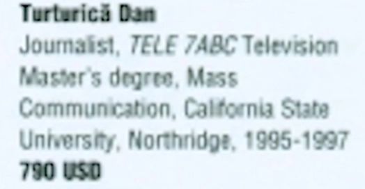 Același raport publicat de Bogdan Tiberiu Iacob, arată că șeful televiziunii publice a beneficiat în 1995 de o bursă de studii în valoare de 800 de dolari. Dan Turturică a primit acești bani pentru 2 ani pentru a se califica la universitatea din California.