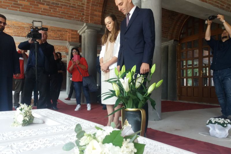 Astăzi, Principele Nicolae şi soţia sa au venit în vizită la Mănăstirea Curtea de Argeş. Cei doi şi-au adus lumânările de cununie şi s-au recules la mormintele bunicilor şi străbunilor principelui.