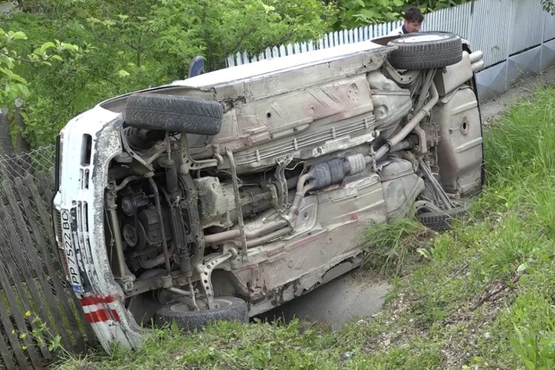 S-a răsturnat cu BMW-ul în șanț! Șoferul nu avea permis de conducere