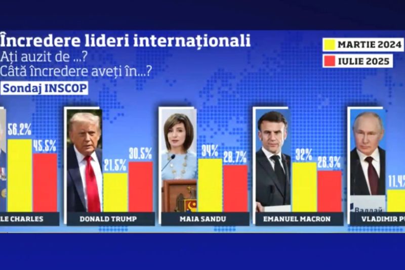 Românii nu mai au încredere în liderii occidentali. Potrivit ultimului sondaj INSCOP, Emmanuel Macron și Maia Sandu s-au prăbușit în ochii românilor. În schimb a crescut încrederea în Donald Trump și, paradoxal, chiar în Vladimir Putin. Anca Alexandrescu, realizatoarea emisiunii Culisele Statului Paralel, a declarat, joi, la Realitatea PLUS, că datele acestui sondaj reflectă faptul că românii s-au deșteptat și și-au dat seama de unde vine de fapt pericolul.