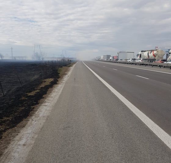 Atenție șoferi! Traficul a fost oprit pe Autostrada A1 București-Pitești, pe ambele sensuri, din cauza unui incendiu de vegetație. S-au format cozi de mașini pe mai mulți kilometri.
