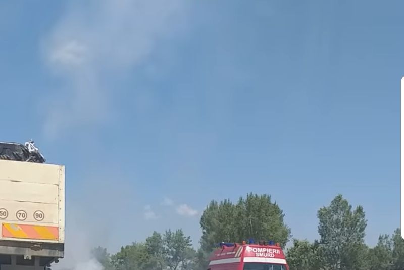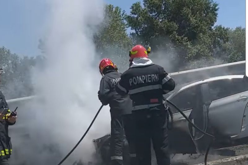 Un BMW a luat foc în mers, pe A1, din cauza unui scurtcircuit electric