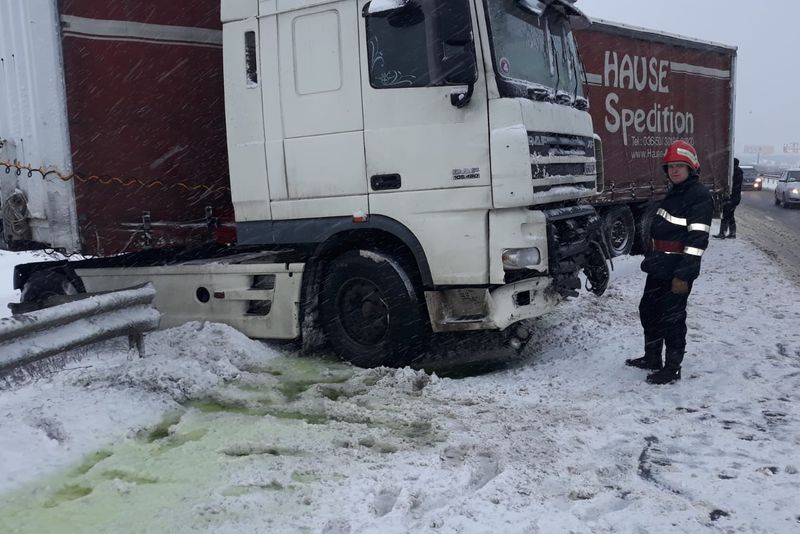 Un TIR a derapat pe A1! Circulația rutieră a fost reluată pe ambele sensuri