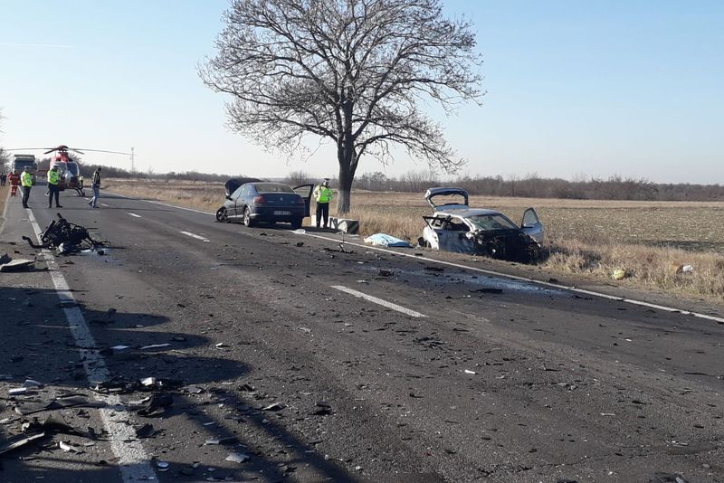 Update-La faţa locului a aterizat un elicopter SMURD care se afla la Craiova. Acesta va prelua o victimă.
