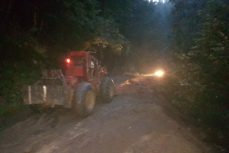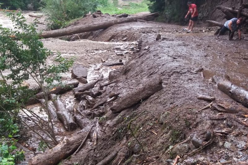 Aluviunile au fost îndepărtate cu buldoexcavatorul, pe Valea Cernatului, în comuna Nucșoara, acolo unde mai mulți turiști au rămas blocați. În cursul serii, drumul a fost deblocat. 24 de persoane se aflau în imposiibilitatea de a trece de drumul forestier cu probleme.