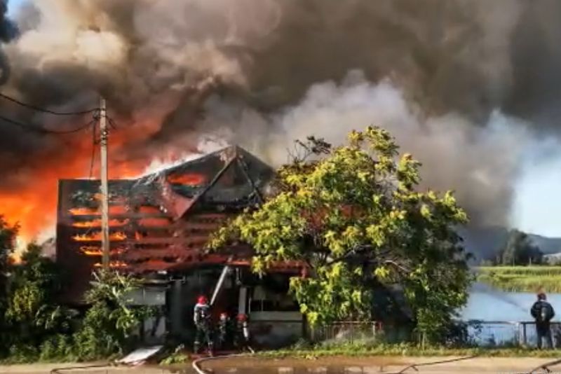 Incendiu de proporții în cartierul Tudor Vladimirescu, din Pitești. Fostul restaurant „Zahana”, de pe malul Argeșului, arde ca o torță.