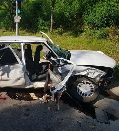 Maşina a fost izbit violent ce un alt autoturism care circula pe drumul cu prioritate. În urma impactului puternic, maşina şoferului nevinovat a fost proiectată într-un stâlp de susţinere a firelor electrice iar cealaltă a fost distrusă pe jumătate.