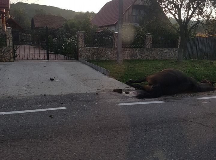 Un șofer a tras o sperietură zdravănă, după ce intrat cu mașina direct într-un cal aflat pe stradă. S-a întâmplat pe DN 7C, în zona localității Băiculești.