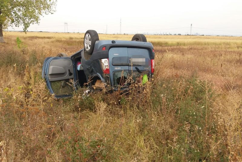 Autoturism răsturnat la Suseni. O șoferiță de 70 de ani a ajuns cu mașina pe câmp
