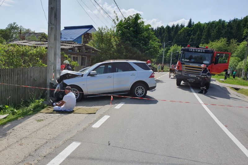 În urma coliziunii, ambele maşini au fost proiectate în afara şoselei făcând un salt de pe carosabil. Maşina de teren s-a oprit într-un stâlp de susţinere a firelor electrice. Loganul a aterizat pe o bancă din faţa unei gospodării, acolo unde era aşezată femeia. Bătrâna a fost prinsă dedesubt, fiind scoasă de echipajul descarcerării de la pompieri.Era în stare de inconştienţă. Avea leziuni la cap, fracturi la picioare şi la o mână. A fost transportată de urgenţă la Spitalul Municipal Curtea de Argeş. Se află în stare foarte gravă.Foto: ISU Argeş