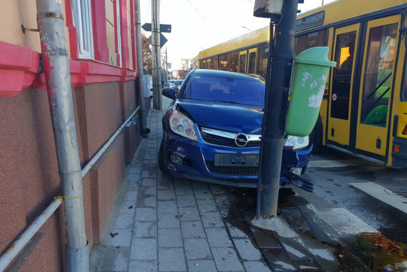 O șoferiță a ajuns cu mașina în stâlpul care susținea un semafor electric. Aceasta, în timp ce conducea un autoturism pe Strada Exercițiu, la semaforul de la intersecția cu Bulevardul Eroilor, a pierdut controlul volanului și s-a oprit cu mașina în stâlp. Șoferița s-ar fi speriat, după ce a fost claxonată de un alt autoturism din spatele său, și a urcat cu mașina peste bordură.În urma impactului, semaforul nu a fost dărâmat, dar mașina a fost avariată. S-a spart radiatorul autoturismului.