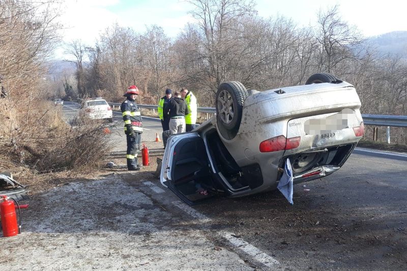 Un accident a avut loc marţi dimineaţă, în comuna Valea Iaşului, pe DN 73C. Din cauza vitezei maşina a aterizat pe plafon iar un pasager a fost rănit. Carosabilul era alunecos.