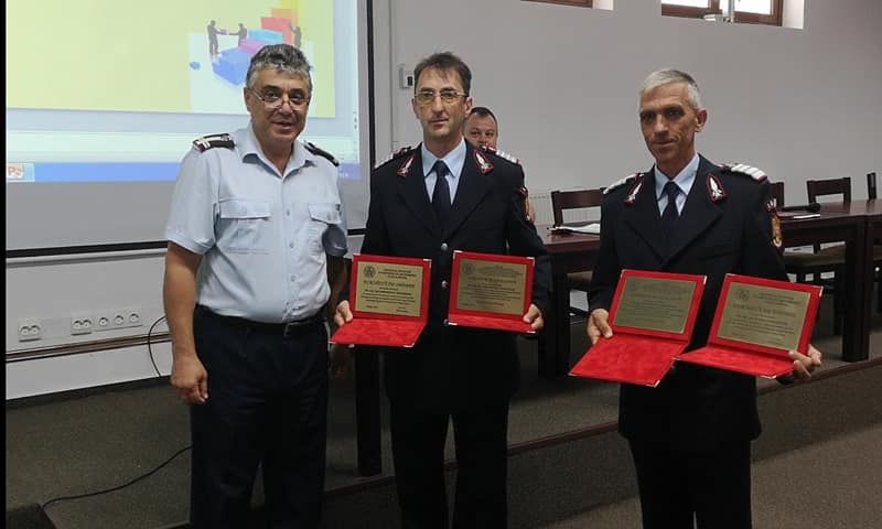 Moment emoționat la Inspectoratul pentru Situații de Urgență Argeș, luni. Doi pompieri s-au pensionat după 30 de ani de activitate. Aceștia au fost felicitați de inspectorul șef.