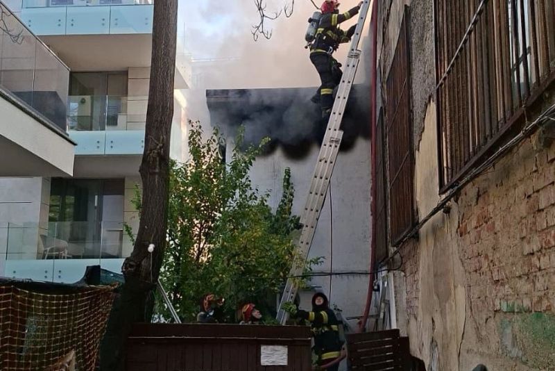 Incendiu puternic în Sectorul 2 al Capitalei. O casă a luat foc. Echipele de intervenții au sosit la fața locului și aplică procedurile specifice pentru stingerea focului.