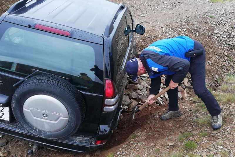 La fața locului s-a deplasat o patrulă de jandarmerie din cadrul Postului Montan Rucăr care au reușit să deblocheze autoturismul. Jandarmii i-au însoțit pe turiști până la Cabana Voina pentru ca aceștia să poată continua în siguranță drumeția.Foto: Jandarmeria Argeș.