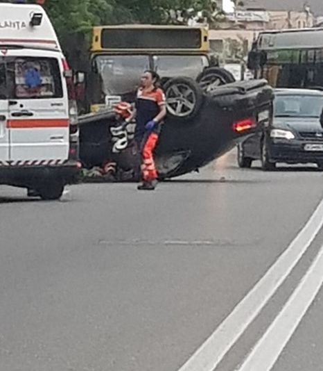 mașina răsturnată la Spitalul Militar 4