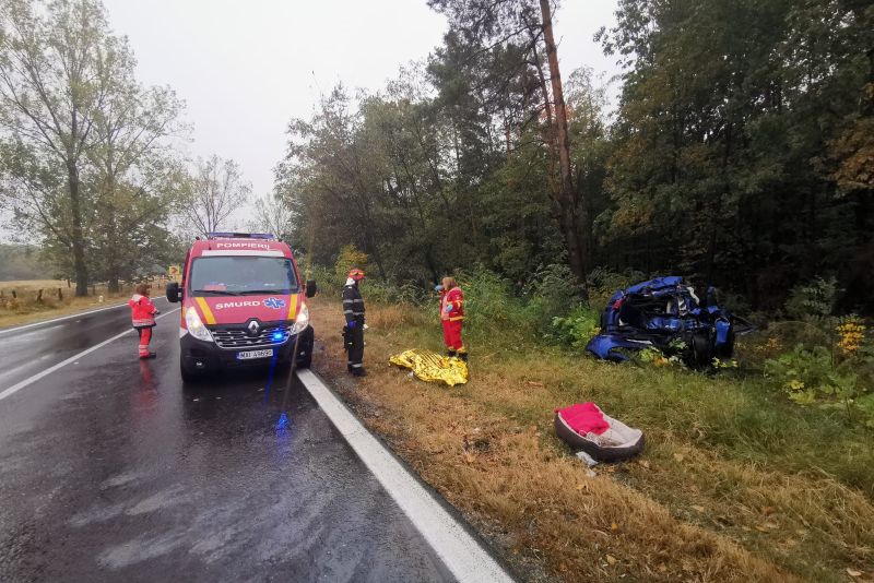 Accident teribil, pe DN 7, în comuna Morăreşti, vineri. O femeie a murit iar soţul ei este rănit grav. În accident a murit şi câinele celor doi soţi. Maşina în care se aflau a fost lovită de un TIR.