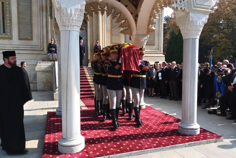 La ceremonia religioasă vor asista Custodele Coroanei Române, Margareta, Principele Radu, Principesa Sofia, Principesa Maria alături de Ducele Amedeo de Aosta, Principesa Mafalda (fiica Ducelui De Aosta) şi Lord Peter Rosslyn (şeful Casei Principelui de Wales şi Ducesei de Cornwall).La ora 12:30 va începe procesiunea militară şi religioasă către noua Catedrală Arhiepiscopală şi Regală, unde se va desfăşura ceremonia îngropării în pridvor, la care va participa doar Familia Regală. La momentul intrării sicriului în criptă vor fi trase 21 de focuri de armă, iar Muzica Militară va intona Imnul Naţional şi Imnul Regal.Ceremonia funerară se va încheia după ce Custodele Coroanei Române, Margareta, va ieşi din catedrală cu stindardul Reginei-mamă împăturit şi îl va da în grijă Aghiotantului Regal, pentru a fi expus ulterior în muzeul de la Săvârşin.