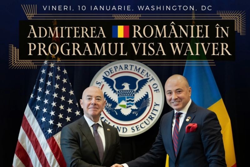 Un eveniment oficial va avea loc, vineri, 10 ianuarie, la Washington, D.C., pentru a marca includerea României în Programul Visa Waiver.