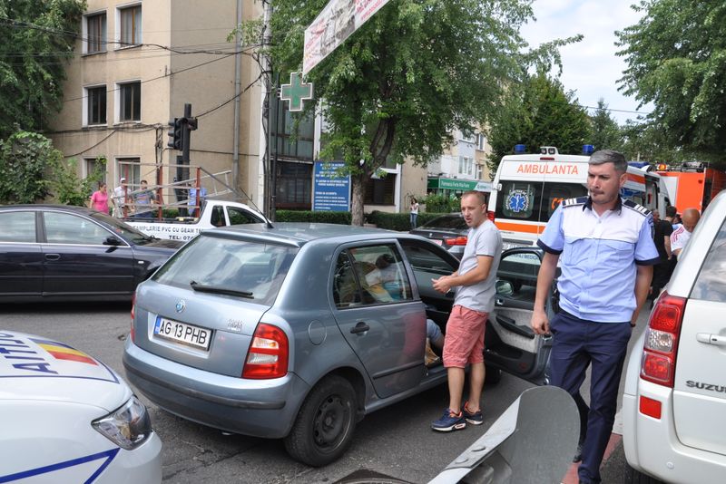 Accidentul s-a produs în intersecţia semaforizată situată în apropierea Teatrului Alexandru Davila, din Piteşti. Taximetrul cobora dinspre Trivale pe strada Constantin Zărnescu. O Skoda, venea dinspre Centru pe bulevardul Republicii, mergând către Bascov. Niciunul dintre şoferi nu a oprit, maşinile ciocnindu-se violent.Taxi răsturnat pe-o parte, după impact. Şoferii din trafic au oprit ca să-i ajute pe cei din maşină. Pasagerul a fost scos, de câţiva bărbaţi, prin geamul lateral al taximetrului. Tânărul în vârstă de 26 de ani, din Topoloveni, aflat în taxi, era rănit uşor.