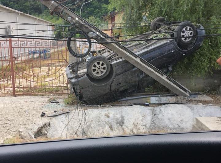 Trafic blocat pe DN 7 C! Un autoturism s-a răsturnat şi a rupt un stâlp