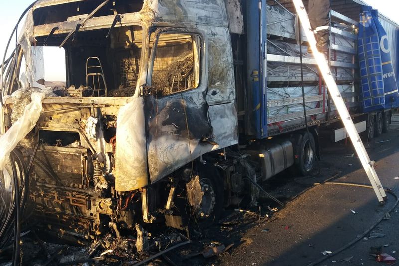 În dimineața zilei de luni, 18 februarie, un TIR încărcat cu termopane a ars pe Autostrada București - Pitești. Intervenția pompierilor a durat circa 3 ore și jumătate.
