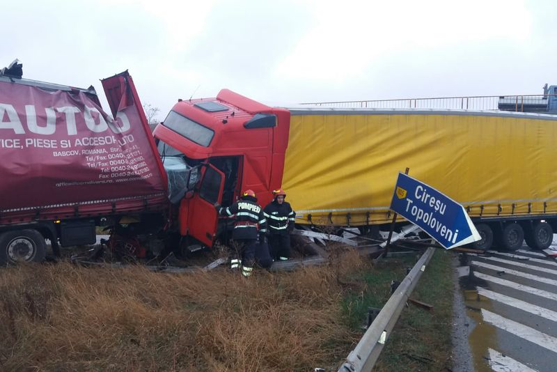 Un accident rutier a avut loc miercuri dimineața, între două tiruri, pe Autostrada București-Pitești. În urma impactului, șoferii au fost răniți, fiind transportați la spital.