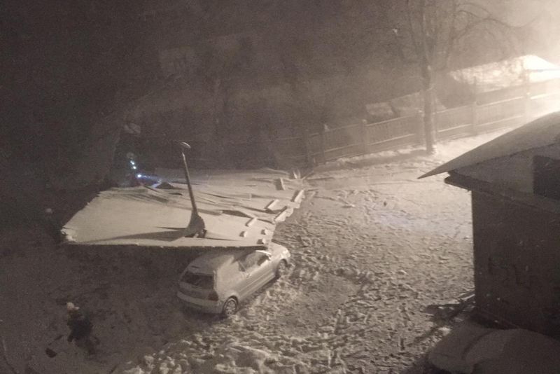 VIDEO! Acoperișuri luate de vânt la Câmpulung! Mai multe mașini avariate