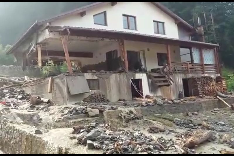 Video-Femeie luată din casă de viitură ! Vile distruse de aluviuni